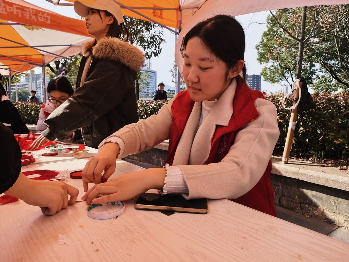 活动当日,文明广场“艾的红丝带”主题摊位人头攒热。在实践队员引导下,同学们亲手编织红丝带并佩戴张贴,共同构筑起一面满载温情的“防艾宣言墙”。这面由无数红丝带组成的“爱心墙”,不仅串联起对艾滋病感染者的理解与支持,更在冬日校园里汇聚成一道温暖风景线。