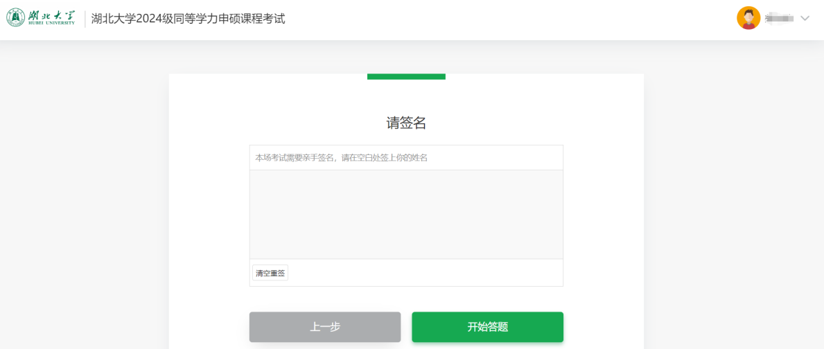 2.2进入考试后,考生需根据屏幕提示在签名区域手写签名,然后“开始答题”。