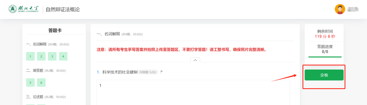 2.3考生一旦确认交卷,本次考核即结束,将记录考核结果,考生交卷前务必仔细检查答题内容。