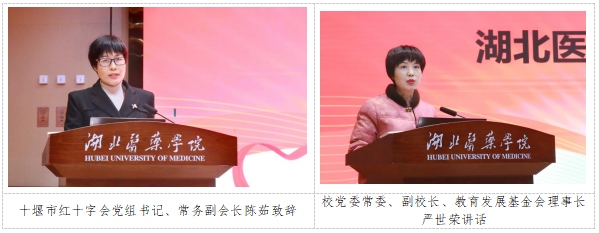 十堰市红十字会党组书记、常务副会长陈茹表示,普及应急救护知识、提升自救互救能力对构建公共安全体系至关重要。她高度评价我校人才培养工作,并希望双方以此为契机深化资源共享,推动十堰红十字事业与医学教育深度融合和高质量发展。校党委常委、副长、教育发展基金会理事长严世荣则指出,此次捐赠既是对学校教学设施的有力补充,更是对育人工作的巨大鼓舞。相关部门充分利用智能系统优化教学和培训,培养更多理论扎实、技能过硬的医学人才,以实际行动践行“人道、博爱、奉献”的红十字精神。